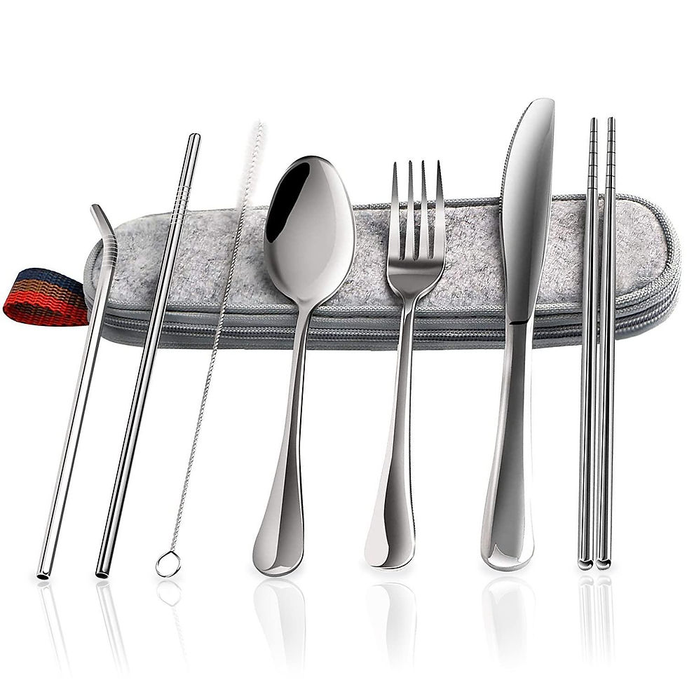 8Pcs Travel Silverware Set with Case Portable Utensils for Lunch Box S